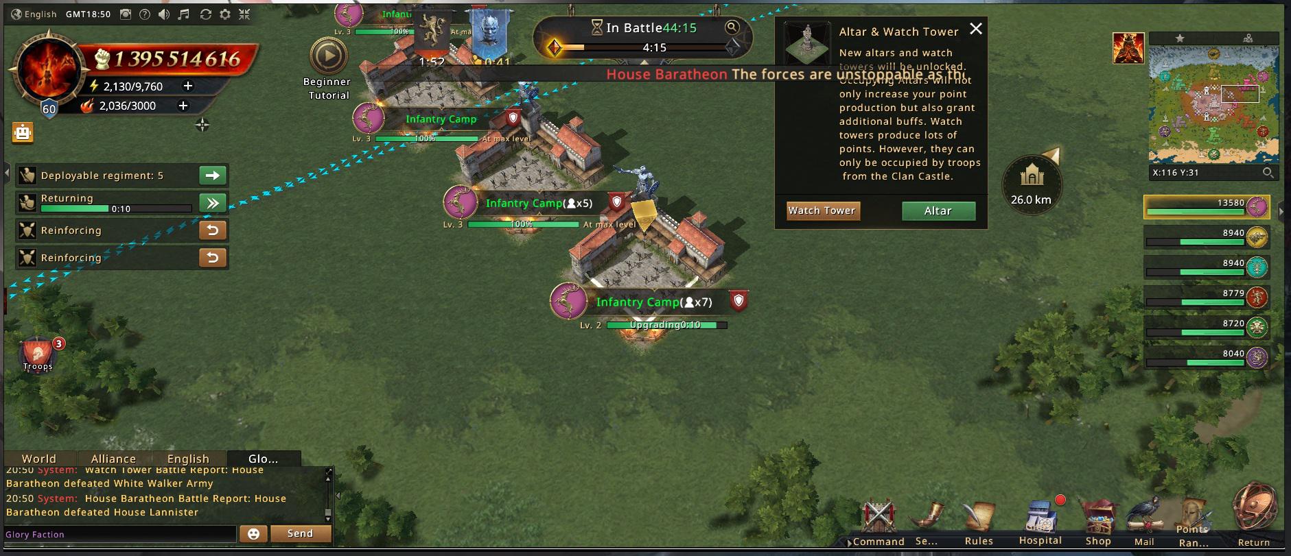 And since no other House seemed interested, we took it as a sign and built our second row as Infantry Camps. The towers were Spear, so this setup gave us an advantage for the first capture points, the points that make or break the Troop Camp strategy.