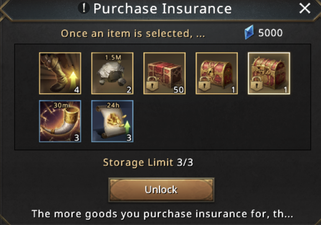 However, since it can be demoralizing to spend a lot of blue diamonds to receive the items of your liking, only to lose them to plunders, the game has introduced the insurance aspect. Before the carriage sets out, the player has the option to insure three of his rewards for the cost of 500, 2000 and 5000 diamonds respectively. The items get locked, and while they can still be plundered, they are actually still there, once the carriage returns and its rewards are claimed.