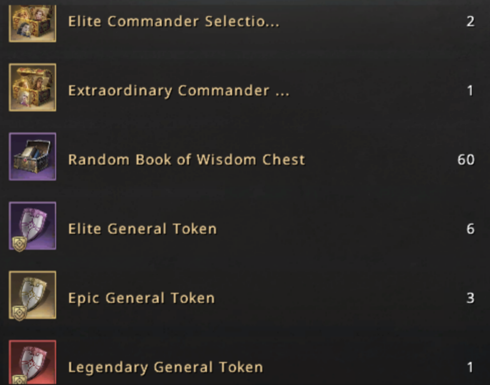 - Commander Chest. The commander chest offers a selection of medals from random, elite, outstanding and extraordinary and awakening tokens as well from elite, epic and even legendary.