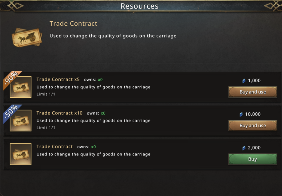 Usually, to reroll one carriage from common goods to supreme goods takes approximately six trade contracts, and even if the player reaches the supreme goods, they may wish to reroll the carriage further to obtain the specific rewards they need.