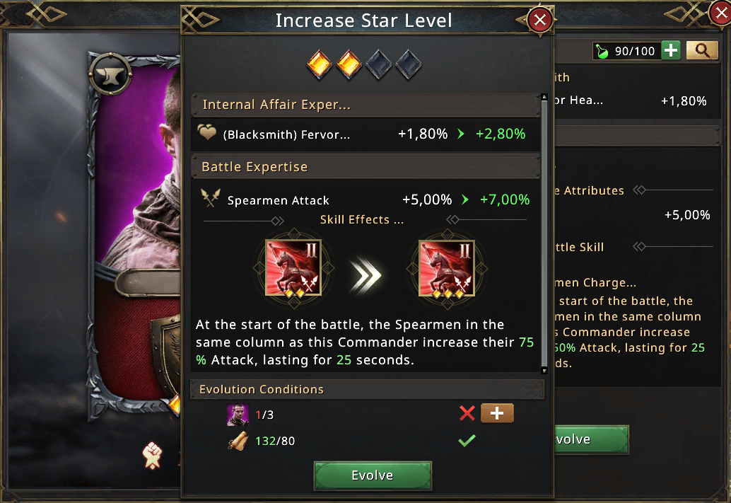 Generally, the Advisors are linked to a specific troop type: Spearmen, Cavalry, Infantry, or Bowmen. Depending on your preferred troop type, you can select Advisors that match your strategy. Players often focus on one troop type to specialize their armies. For example, if you’re focusing on Spearmen and use the Weakness synergy, you’ll want to use Advisors that boost Spearmen's stats and have skills related to Weakness (for example, heal). *Check the list below for all the Advisors and their attributes*