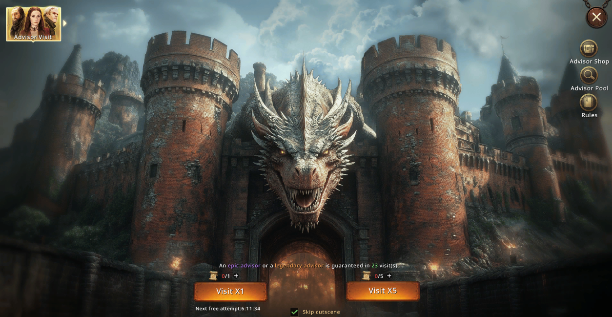 To make the Advisor System even more exciting, the game introduced the Time-Limited Advisor Card Pool event. During this event, players have the chance to obtain Legendary-quality Advisors, which are not available through the regular Advisor recruitment system. These special Advisors offer unique boosts and can greatly enhance your lineup.