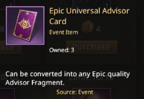 - Epic Universal Advisor Card - you can convert this card into any Advisor of Epic quality fragment.