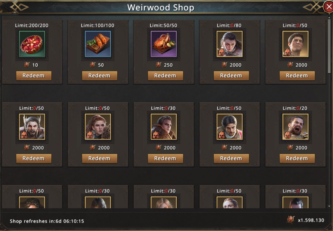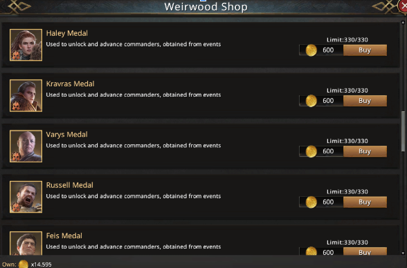 In the Weirwood Tree you can get “Weirwood Tokens” you can use to buy commander medals in the Weirwood Shop. With 180 Stamina and your passive income, you can get up to 35k Weirwood Tokens every day. With those Weirwood Tokens, you can buy almost 18 medals a day for 2000, which is more than 2 Elite Tokens a day. Of course this does not include additional stamina you can get from Expedition Beyond, items or natural regeneration, which increases that number even further.