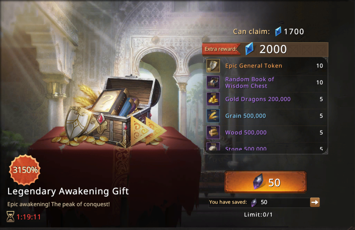 The first stage of the Legendary Awakening Gift also gives you a Token for 5 BD if you have a 50% discount.
