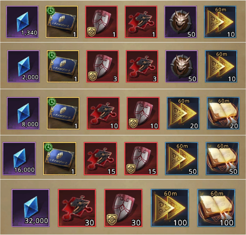 Since June of 2023, the Recruitment Pass “Legendary Hero Decree", the third type of the pass, allows you to select tokens instead of medals as a reward. Currently, there are Tokens for all Epic Commanders besides Melisandre in the pass, but when you need the Tokens for one of those, the pass is absolutely worth it. With 200 BD, you get 120 Tokens (+ extra from the chest from level 100+), which has the same value as the “Harvest”-Pack stage one and so is one of the best ways to get commander medals with black diamonds, this one in much higher quantity though.