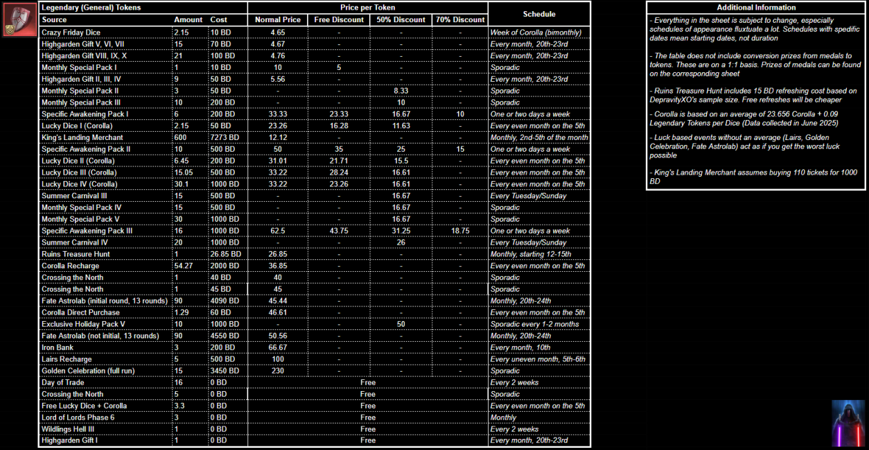 Generally speaking, the Highgarden Gift and the Monthly Special Pack give the best value, but the Lucky Dice pack is also an option. Everything above 17 BD per Token should be avoided at all costs and even some of the offers around 16 BD per Token are just for the impatient players.