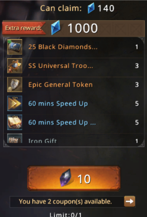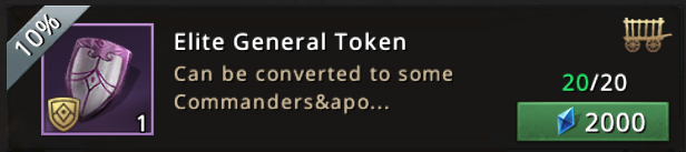 Another way to get Elite General Tokens is to buy them directly. You can buy 20 of them each day in the VIP shop for 2k blue diamonds each. This is definitely an option for players who get a lot of diamonds from alliance gifts. For most players though, this is too expensive to be done daily, especially because there are free options to get them as well. I would suggest considering buying them when there are diamond spending quests like they are in Alliance Mobilization. Even then I would only buy them when I have no better options to spend a lot of diamonds in a short time on.
