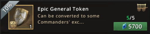 Another possibility is to convert your leftover medals to tokens with a 3:1 ratio. Unlike for Elite Tokens, this is much harder here. The normal packs disappear once you get the commander to gold, so it is hard to have many leftover medals. When you care less about Epic Tokens, you can get the Random Common Commander Chests in Weirwood instead of normal medals. These chests have a low chance to drop 16 rated commander medals, which, when you have them gold, can be converted into Epic Tokens.