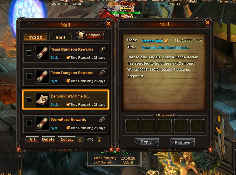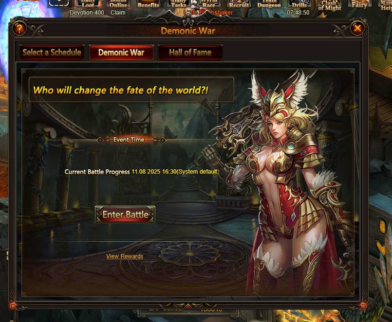I set a Demonic War on 11/10/2025 at 2100. WHen i checked my battle date, it shows it was defaulted to 11/08/2025. I have screen shots as well as engame mail showing when the battle was set for. Will this be fixed or looked into as we do have a Single Server Tycoon coming up.
