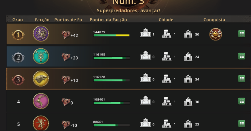 But despite the small victories, an alarm bell rang again. As I had imagined, the Baratheon clan had managed to dominate the Towers, and those points placed them in first place. While we struggled in third place overall... this forced us to attempt the City of Glory to reach greater heights.