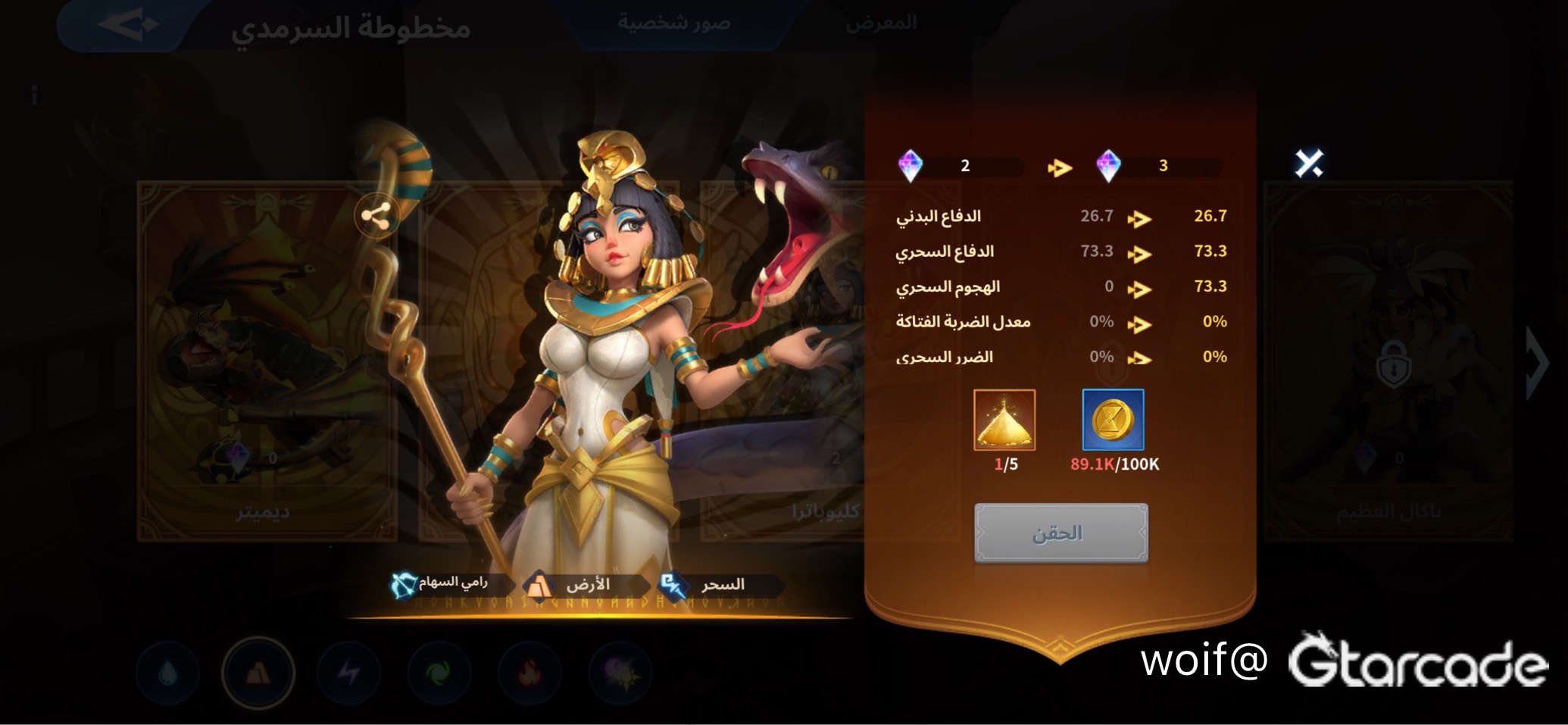 Cleopatra 6 stars with level 12 attributes and the ability to use stardust to inject images of immortals