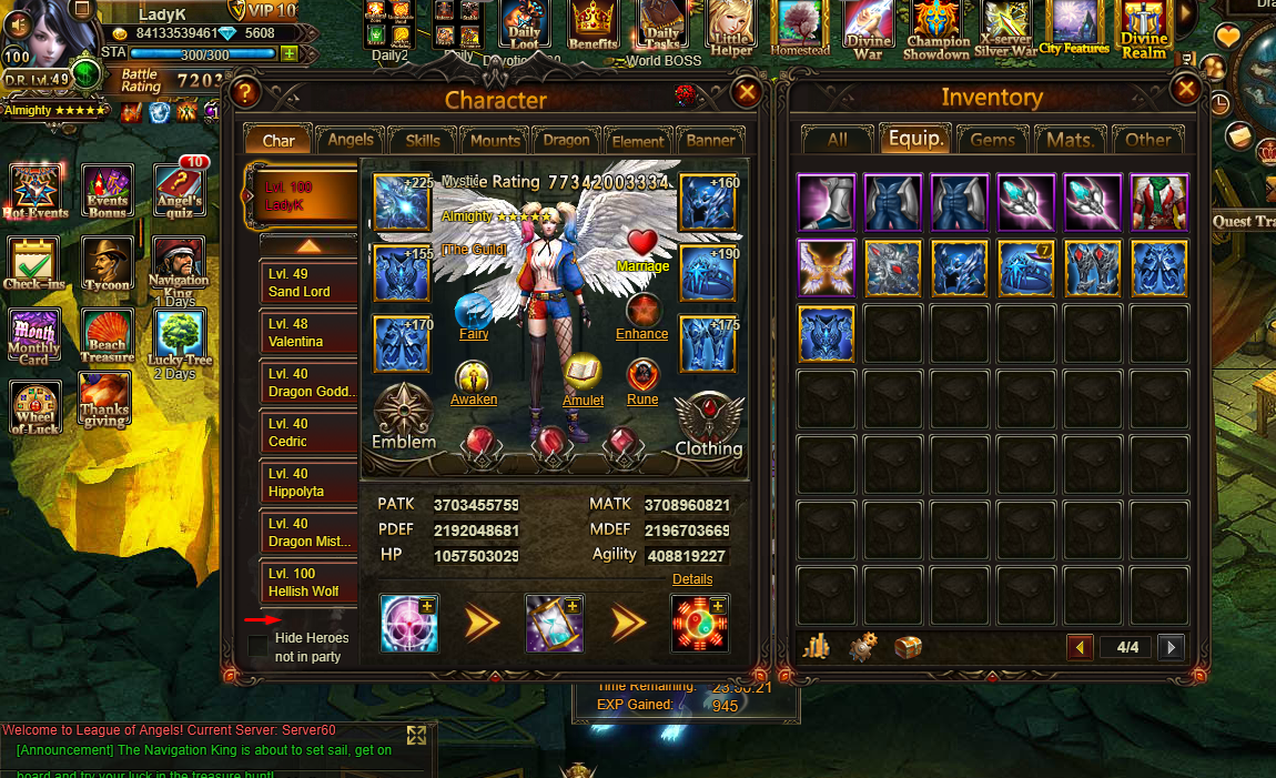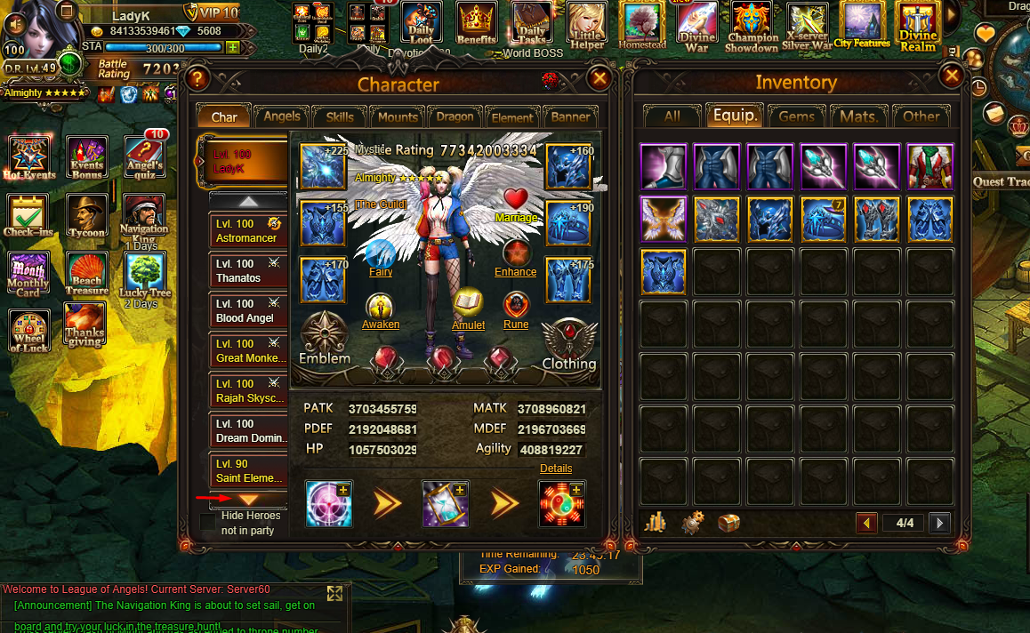 Is there a way the devs could put a scroll beside the hero screen. I was trying to change out heroes, and the down arrow button kept disappearing. Then you have to check "hide all heroes not in party", uncheck it, to try to scroll thru the list of heroes again. Takes you back to the top.Even level 100 heroes appear near bottom of list. Thank you.