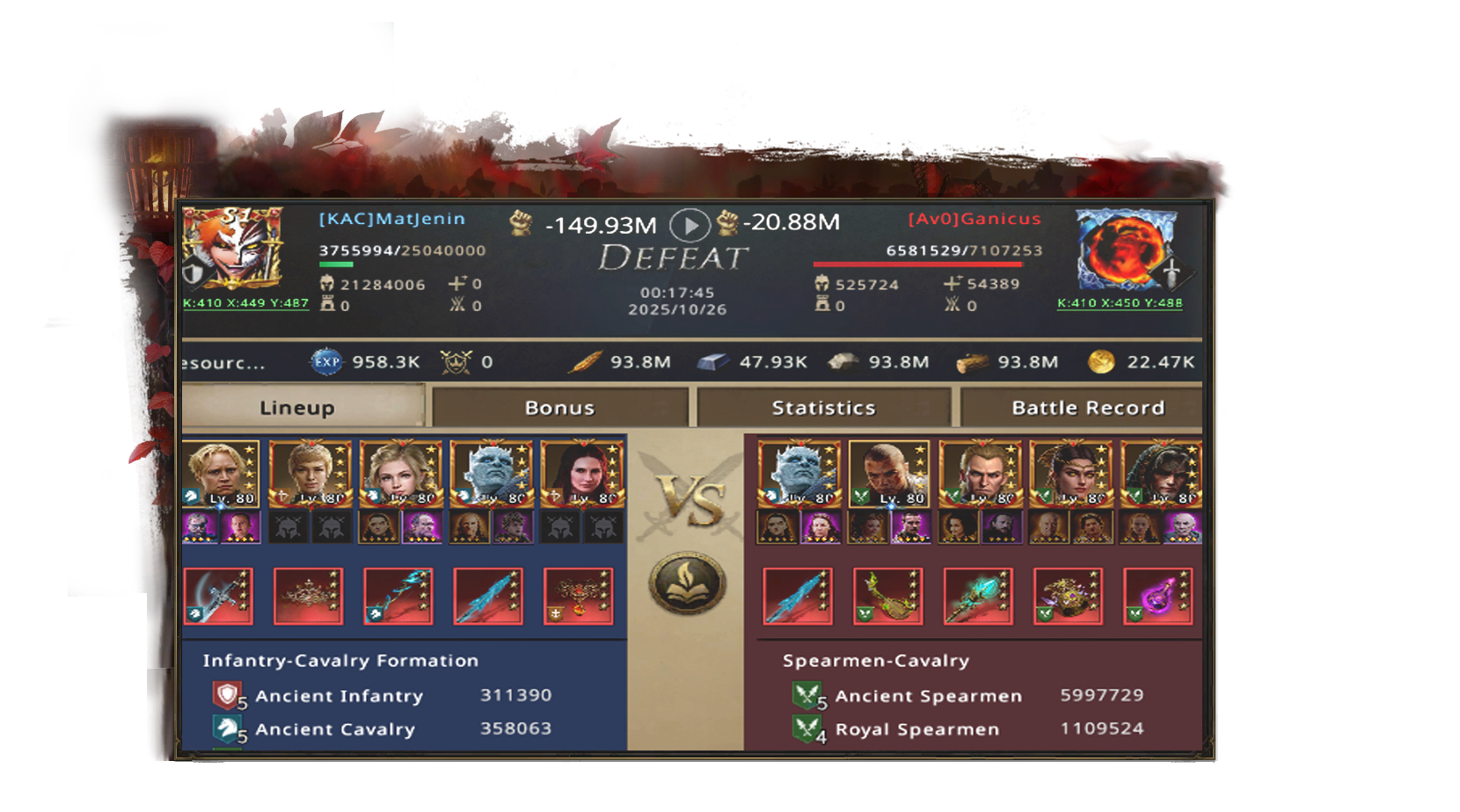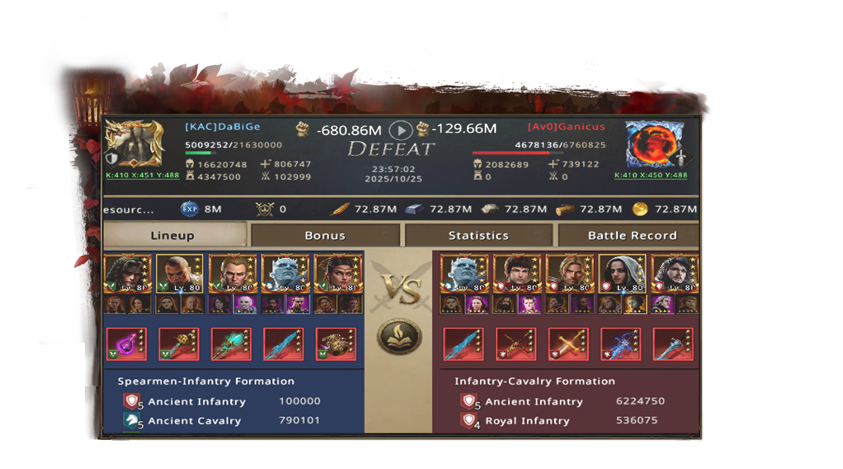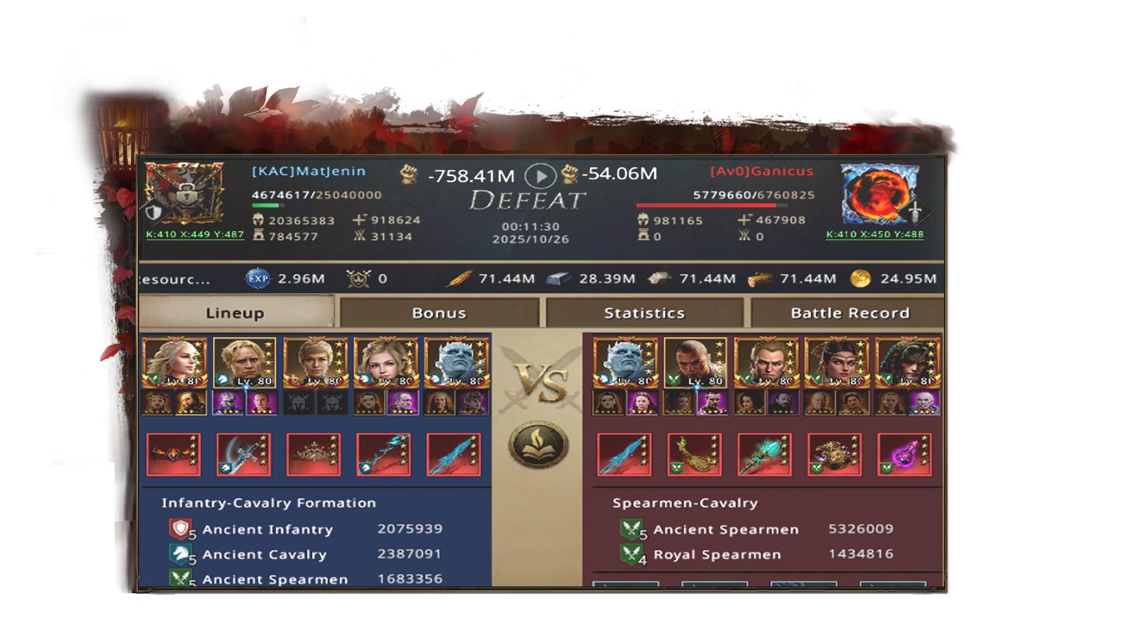 Before dawn, Av0's banners had already started to gather at the rally point. Ganicus's Infantry Bleed lineup, a deadly combination of fire and terror, included Night King, Daeron, Vorian, Jaqen H'ghar, and Jon Snow.