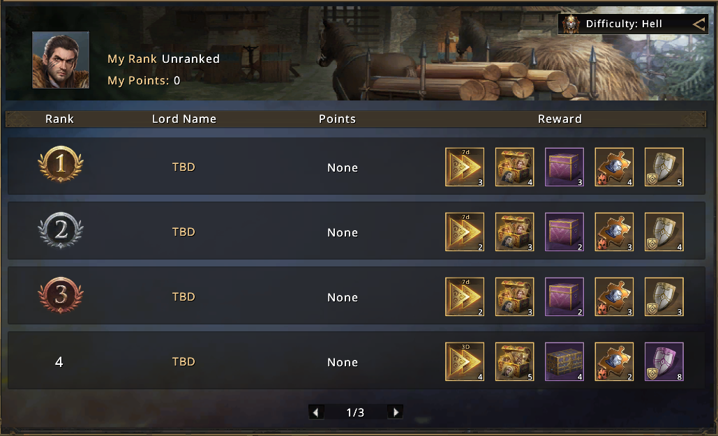 There are also additional rewards for those who manage to be in top 10 personal rankings inside the alliance. The screenshot below shows the ranking rewards for the Hell difficulty level.