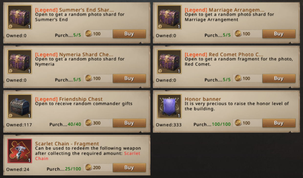 These Castle Truce Skins can be purchased using Truce Skin Exchange Vouchers, which are obtained from the Alliance Conquest / Siege of Winterfell shop and from certain events where they are offered as rewards (e.g., Angler’s Feast).