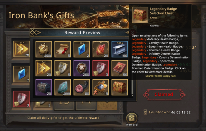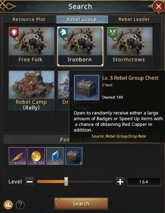 This set helps you defeat Rebel Leaders more efficiently as they grow stronger. You can find its chests in events like Crazy Friday, Lucky Discount, Bounty, War of the Kingdoms, or Return to Westeros.