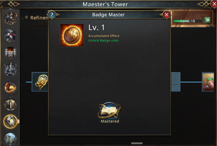 Each piece of equipment can also hold badges, which add extra stats depending on their type and quality. Higher-quality badges provide better boosts, and like equipment, they can be upgraded. Initially, only three badge slots are available for each gear item. Once you complete Badge Master in the Refinement research tree, the fourth slot will unlock.