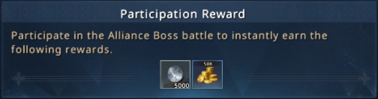 Alliance members will receive damage rewards based on the amount of damage dealt to the boss. These rewards will be received at 0%, 30%, 60%, and 90% boss damage milestones.