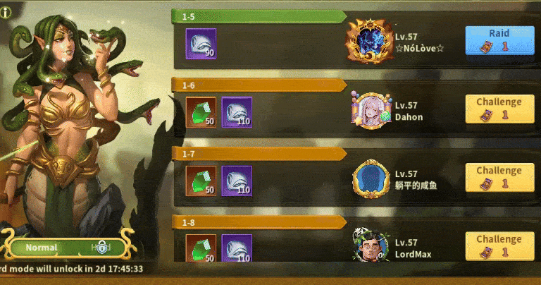 Glorious Challenges are similar to Well of Time campaigns. Players select a team to tackle each challenge, and beating each challenge will net you 50 Gems for first-time clear rewards and Serpent’s Eye that you can trade in for rewards in the Celebration Shop. Completing each level unlocks a raid feature. Subsequent raids will earn you Serpent’s Eyes. There are two modes. The Normal Mode is available at the start of the event and goes up to level 16. The levels are extremely easy, and most players should not have much difficulty clearing them. The Hard Mode unlocks after three days and will be similar to the Elite Campaigns. You get five free attempts a day, and it refreshes every day at 0 UTC. You can also purchase up to 100 additional attempts in the shop for 8,000 Gems, but I would save those for the Hard Mode levels for additional clouds. You don’t even need to purchase all of the extra attempts to claim most rewards in the Celebration Shop if you forgo the five sets of Token of Light. Players with the fastest clear times will appear on the level’s ranking ladder.