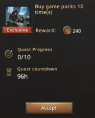 - Buy Game Packs: Depending on the quest, you’ll need to purchase a certain number of packs from the shop using Black Diamonds. These quests generally offer the most points, but they are not accessible to all players.
