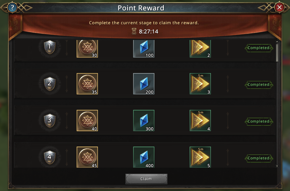 To progress through each stage, alliance members must collectively accumulate a certain number of points. Once this total is reached, players can claim the rewards for that stage.