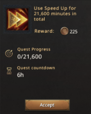 - Use Speed Ups: These are among the easiest quests to complete; all you need to do is activate the quest and use speed-ups of any type, such as building speed, research speed, or training speed.