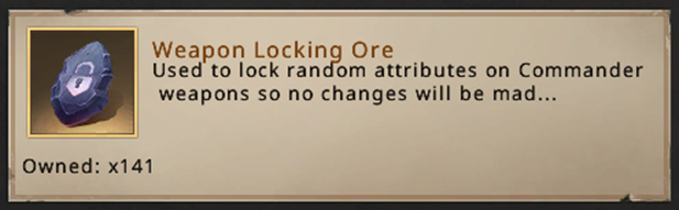 Based on the quality of the weapon, the cost of Locking an attribute also changes! Below are the cost of 1 locking for each weapon quality: