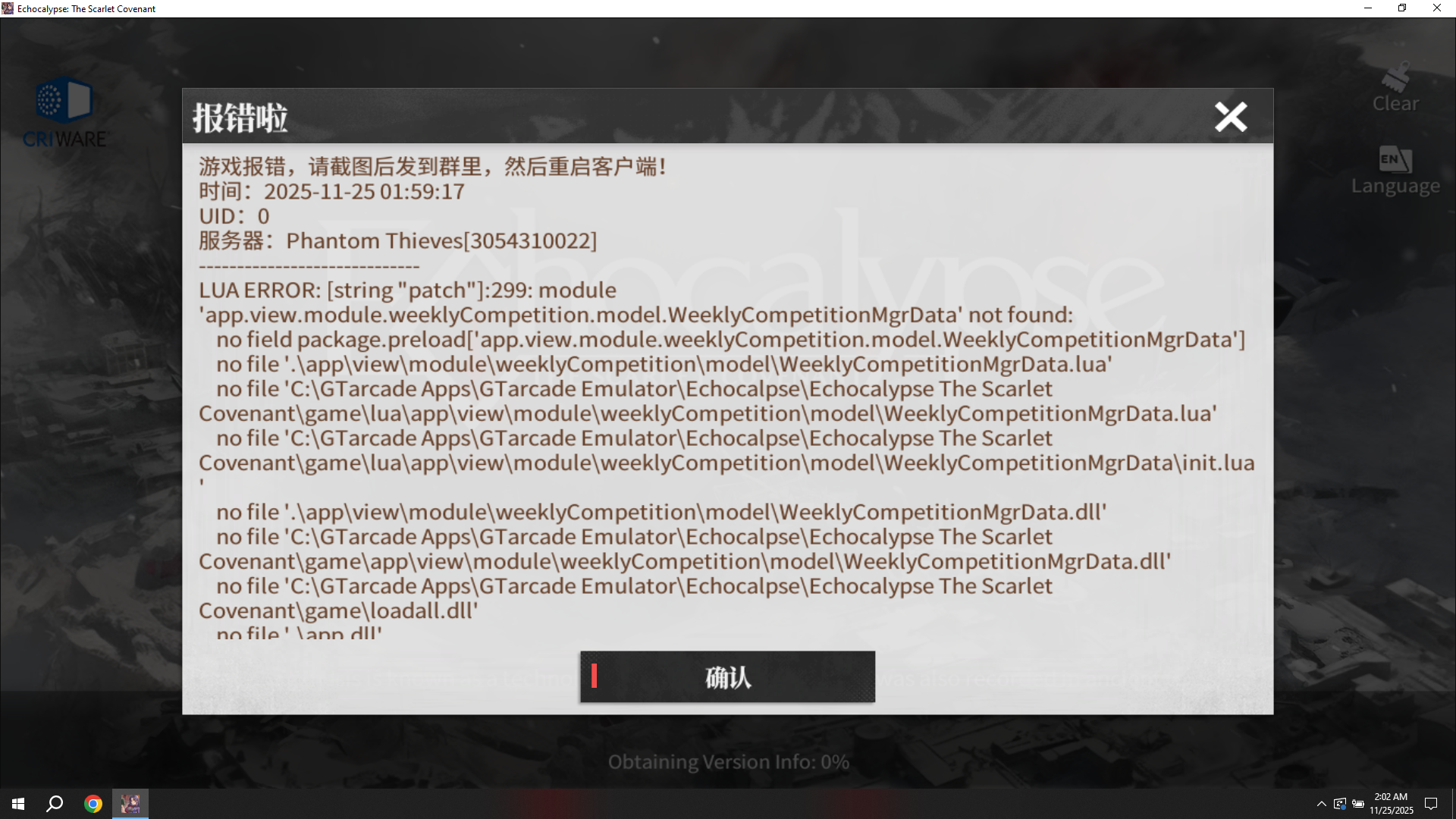 when it tries to get the version info and an error message pops up i cant read with a bunch of errors and the game never loads.