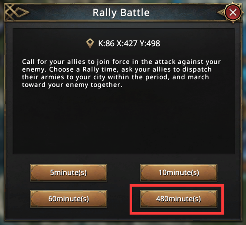 ● When engaging in combat with other players, have alliance members set up 8-hour rallies on rebel camps and open all troop types. This allows everyone to send their soldiers to an ally’s rally, keeping them safe from attacks. Be aware that once rebel camps reset, the rallies are cancelled and troops will be returned.