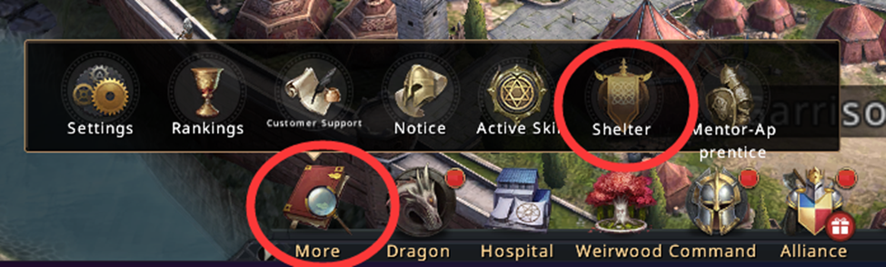 ● In active combat make use of your shelter to hide both your troops and your lord when you are away. Troops and your lord inside the shelter are fully protected. If all of your troops fit into the shelter, you will not lose any soldiers even when attacked, though resources will still be vulnerable if you cannot hide them. There is also a shortcut button for quickly sending troops to the shelter.