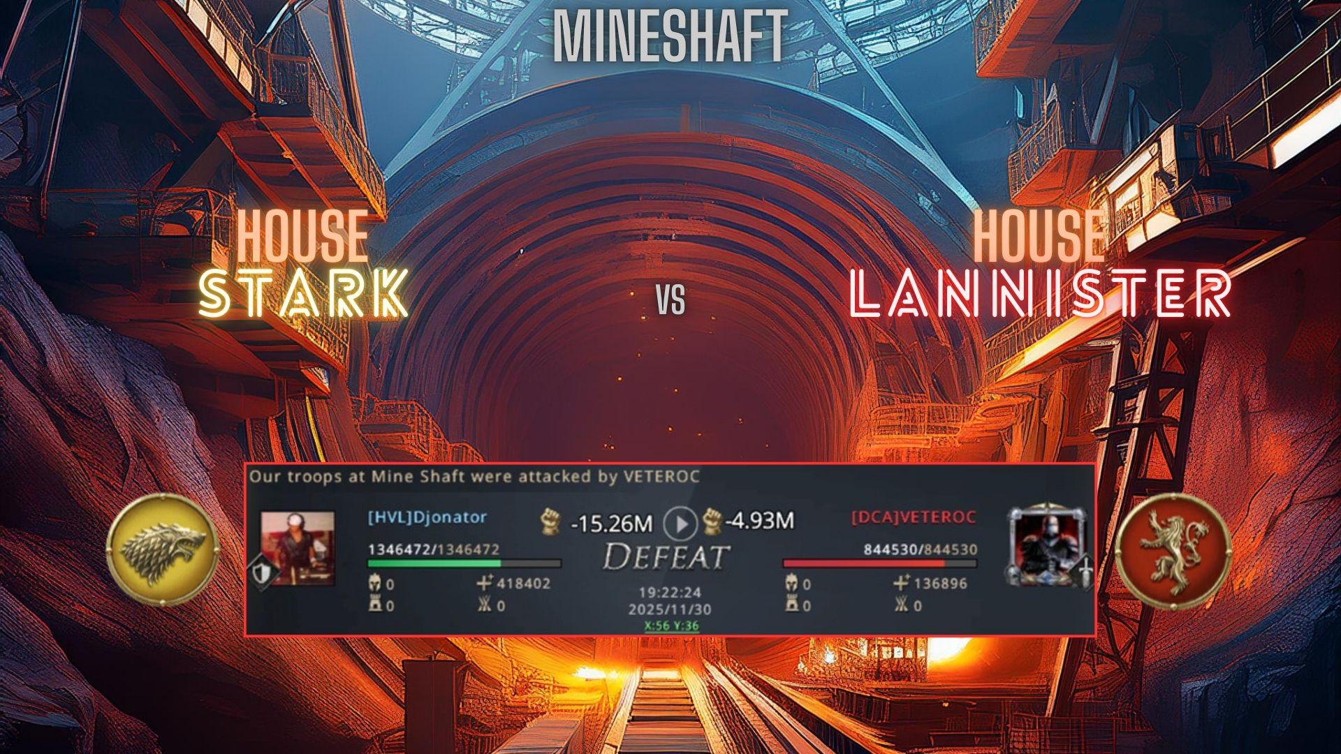 Meanwhile House Baratheon had lost their clan castle and were lounging around in last place with no hope in sight, their leader called the match and they remained in last place for the rest of the match. House Tyrell had already secured their fourth place with the capture of two Mineshafts which left House Greyjoy in fifth place respectively.
