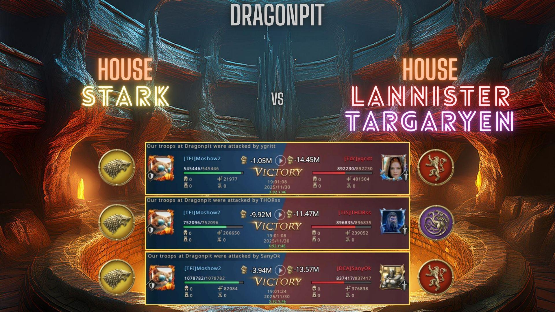 The Dragonpits became the next point of contention, “we hold two Dragonpits, can we defend both is the question,” Moshow2 targeted House Lannister again by taking the closest Dragonpit to them, in hopes they wouldn’t attack the one that was being taken closest to House Stark. “House Stark is becoming too strong, we can’t afford to let them capture multiple Dragonpits,” THORss knew buffs were crucial for the upcoming Glory City fight and he wasn’t content with a third-place finish. In the end House Stark would lose one of the Dragonpits to House Targaryen, who captured two Dragonpits and were gaining on House Lannister who found themselves in second place due to the Watch Towers changing hands.