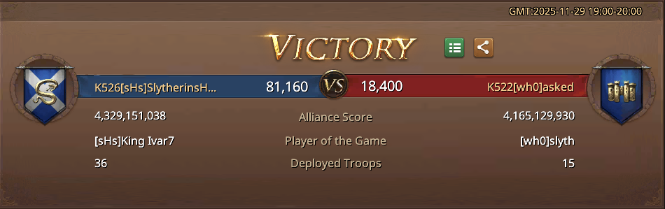With Casterly Rock lost, wh0 never truly recovered from the loss, turning the match into a strong lead for sHs. After sHs depleted their mine, ProtocolVPN ordered a fresh round of rallies to oust wh0 from the Targaryen Mine. After the initial clash, wh0 forces were depleted thanks to distraction tactics at their base, and sHs armies stormed and took over the mine.