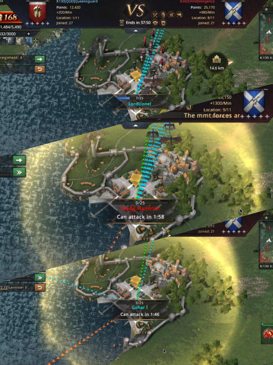 The control over the strongholds is short lived for QGD as they are both attacked and seized by mmt. As a last resort, LordLionel takes back the Lannister port for QGD and 11 players join the reinforcements, it is truly their last hope.