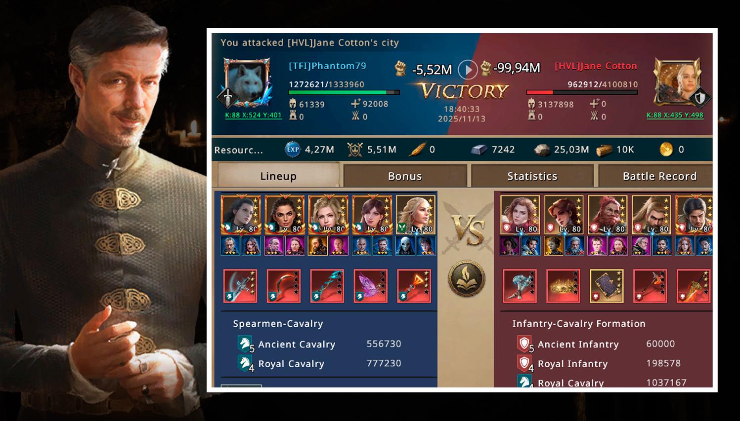 In the third attack, Phantom controlled the field better. He stopped acting on impulse and began moving his troops with measured discipline. This was the cleanest attack against Jane Cotton, with 3.1 million kills and only 61 thousand losses. For the first time since arriving in HVL, Phantom felt he was regaining momentum. But the emotional weight was already accumulating like iron on his shoulders.
