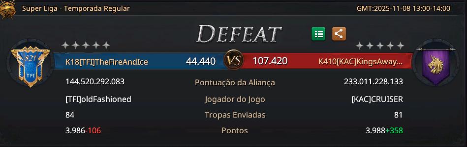 Season 22 of Alliance Conquest was moving forward, and TFI was navigating a season full of highs and lows. The two initial victories had ignited the flame of optimism, but the bitter defeat in the third round brought back the gravity of the competition. The standings were tight. Every point mattered. And that match against KAC was not just another confrontation. It was the door that would decide whether we would continue dreaming of the playoffs or fall along the way.