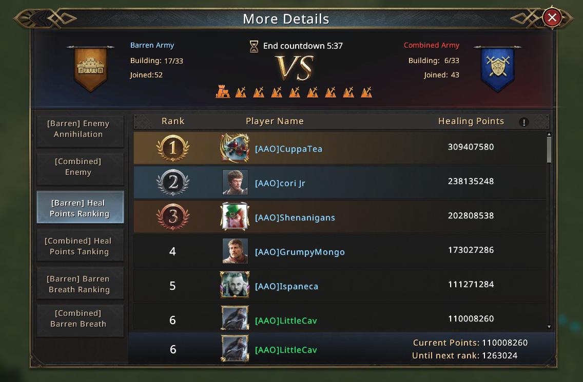 Last time we played RR with the alt alliance, I went full warlord mode and hit anything that moved. Sure, I got 1st in eliminations and in healing... but not even 1st in Breath earned. After spending hundreds of days in healing speedups and getting mediocre rewards, I promised myself I would never do that again.
