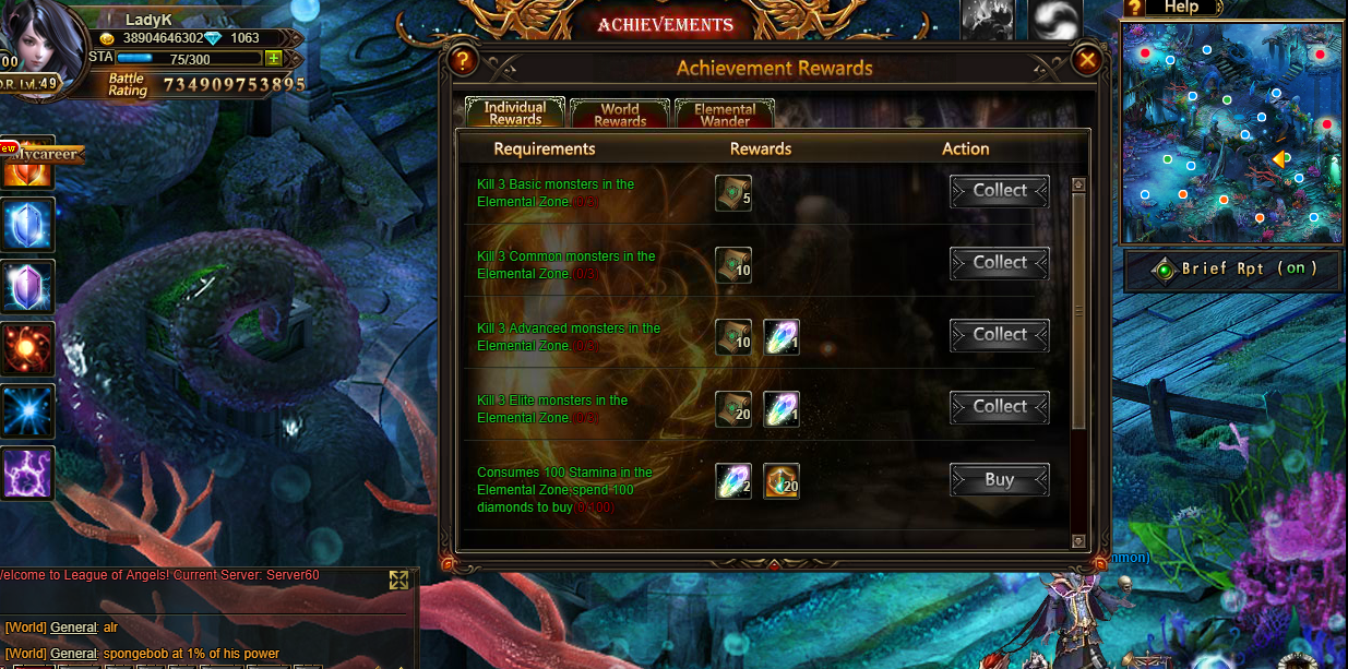 Okay, something is going with this server. Reset - Quests & bonding quests already done. Arena rankings already collected. Finally got screen shots of Elemental Zone: