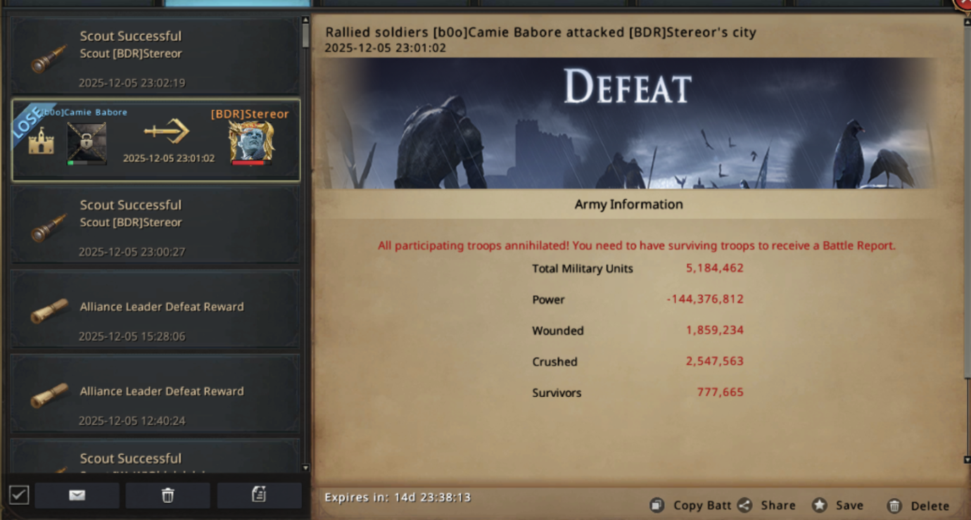 Previously, Camie’s last raid against a BDR lord, named KingDragonVN, they were able to get at least one rally hit off before their city was bubbled. Just because the lord is offline, for top alliances, it is common that many share each other's cities and are more than able to protect each other even when not on the same server. This, of course, was a very long time ago for Camie, raiding countless servers since, and their haste made them overlook the fact that Stereor was a top-level lord, already having these level commanders should have been the give-away for her.
