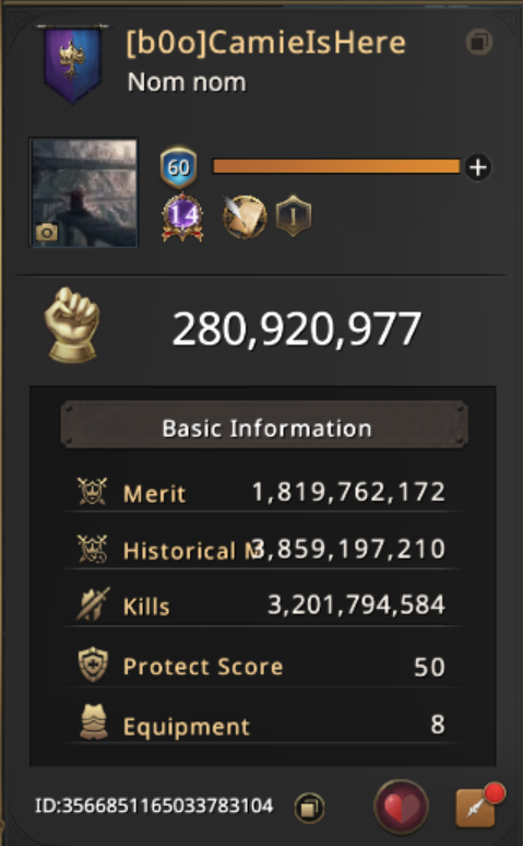 Camie Babore, a lord previously challenging the top merit ranks, now back and stronger than ever, acquiring the likes of Jaqen for their mighty Infantry bleed lineup, their army's prowess can triumph many foes, proven by their accumulated merit and current rankings at the top.