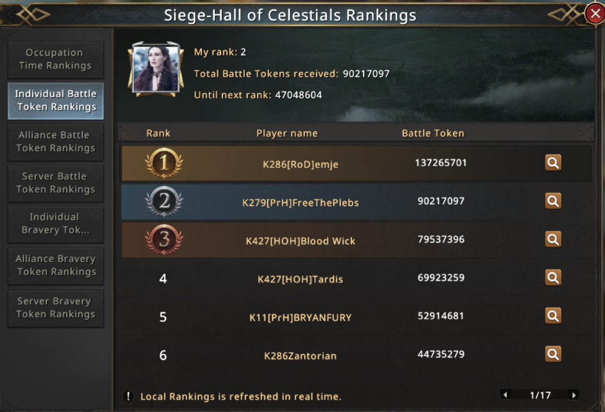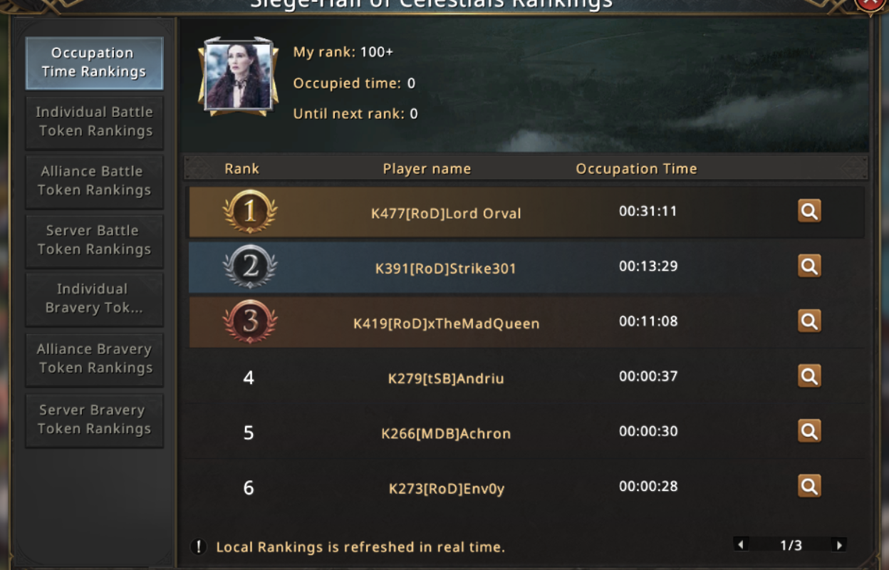 FreeThePlebs was waiting this battle with great impatience. She was very close to collect enough bravery tokens to complete her red badges. When she got the message that she has the honor to support one of the strongest warriors in RoD – Lord Orval, she prepared quickly and was ready to give everything, so to can her team achieve victory, and she to get enough tokens for her aim.