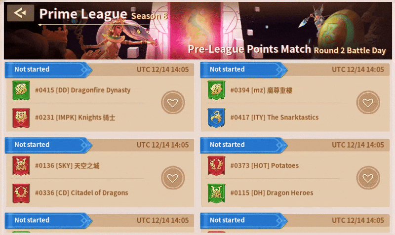 - Server 231’s IMPK will play against Server 415’s DD at 14:00 UTC