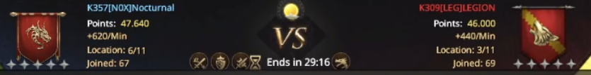 In quick succession, LEG rallied port and then warrior, and while LEG was unsuccessful at the warrior, they were able to win and take the port, which was bad news for N0X. Since the CR race was at the same time and N0X won it, it was not too demoralizing.