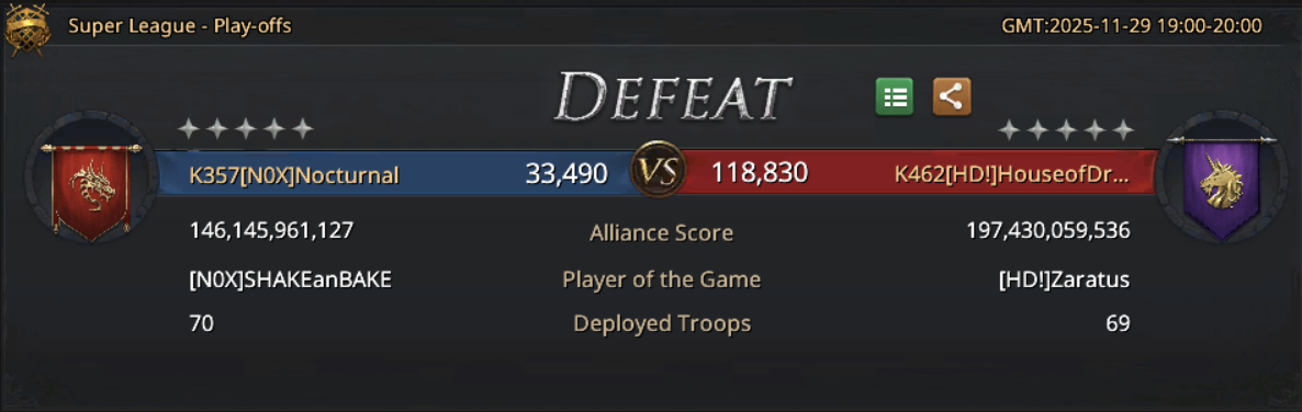 Once the first rallies and solos started to hit, [HD!] noticed the surprise [N0X] prepared for them, they did bring in only low tier troops for the match, to try and help their strongest warriors rank higher in the overall eliminations chart. But knowing that now, will anything stop [HD!] from unleashing their full force at [N0X]?