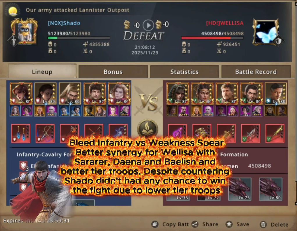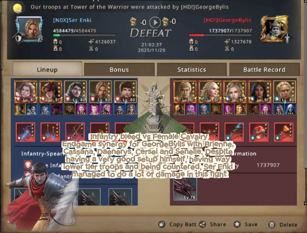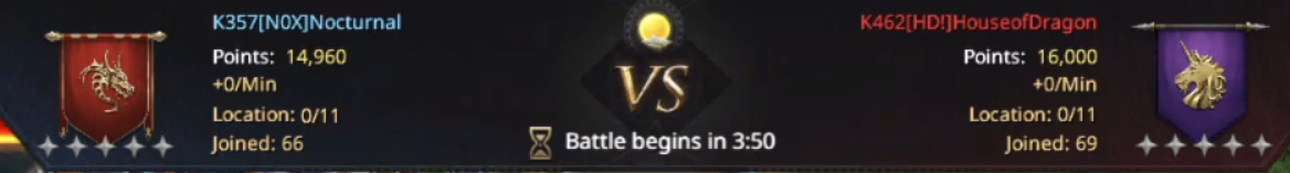 With just a few minutes left to join the battlefield, almost everyone was already present on the battlefield on both sides, 66 warriors for [N0X] against 69 for [HD!]. [N0X] leadership also noticed that despite being almost twice as strong, [HD!] leadership decided to not take any risks and get stars for this fight (stars decrease the troop stats while giving more rewards at the end of the fight, if you win) meaning [N0X] already made a name for themselves in Westeros as not being an alliance you want to mess with. As the fight was about to begin, [N0X] racers equipped their brand-new flip-flops shipped specially for this fight and waited for the start of the battle horn to sound.