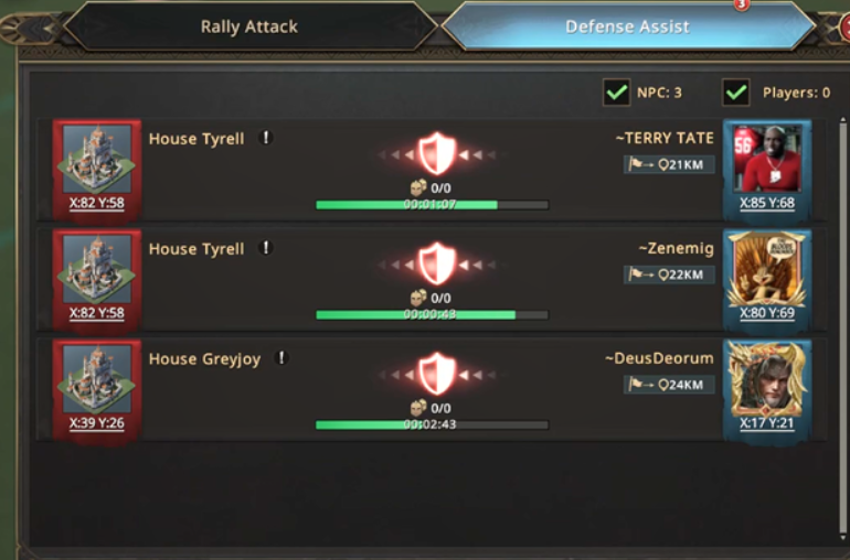 Once the 2 minutes occupation passed, it was time for the construction and as always Tominy choose to go with military camps, this time cavalry camps to counter the watch towers and catapults NPCs. The rest of the warriors quickly sent their construction workers and in no time the military camps were fully constructed, and they started sending troops to reinforce the clan castle and attack the other houses. The first attack managed to take the House Tyrell's clan castle, it was looking like NPCs weren't unprepared for such attack but as soon as the occupation time started, they quickly organized rallies to try and retake 'it