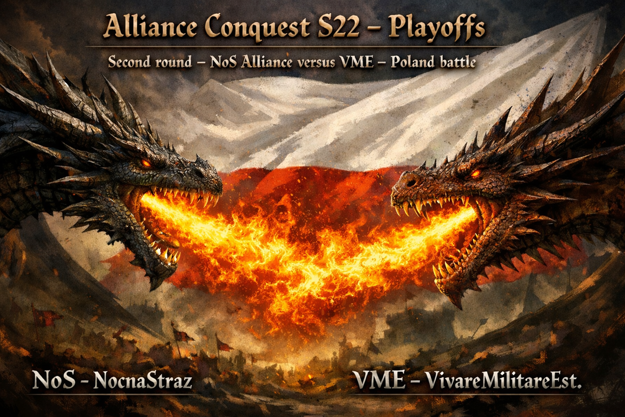 On the other side is NoS – Nocna Straż, one of the leading and oldest Polish alliances. Another playoff in which we are fighting for the best result, more prizes and new experiences.