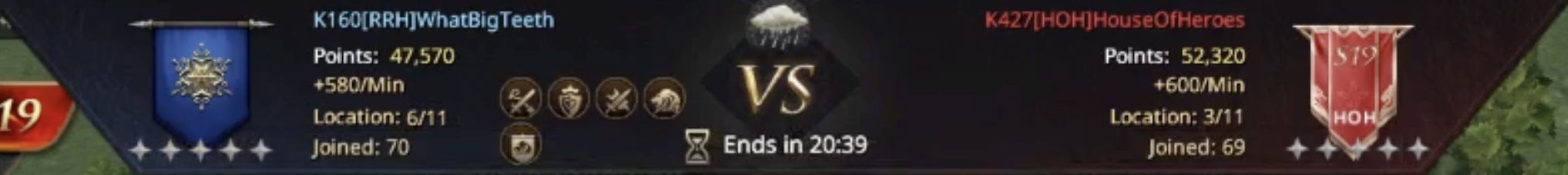 Tonight’s opponent was HOH, an alliance that was not only strong but was assessed to be perfectly on par with RRH's overall power and strategic depth. This wasn't going to be a clean win or a quick loss; the consensus among the shotcallers was a guaranteed, expensive match defined by tight battles and razor-thin margins. There was no clear favorite, no obvious winner, both alliances stood equally poised on the edge of the abyss.