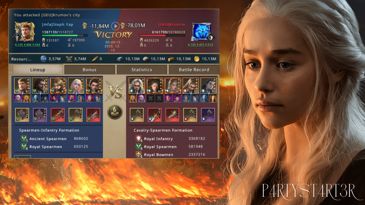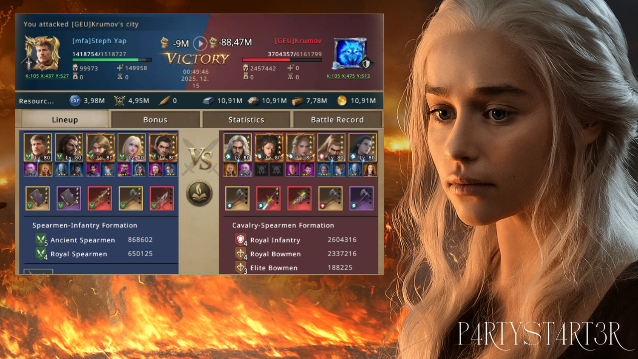 Kingdom 105 wasn’t a friendly place. It had history. The alliances there were the kind that didn't forget a face. GEU was the big name on the block. They were organized. They were dangerous. Usually, if you see a GEU tag, you see a bubble. But then there was Krumov. A castle just sitting there. No shield. No bubble glow. Steph didn’t move immediately. He’s been in the game for too long to fall for a simple trap. He watched. He waited for the heartbeat. One moment passed. Then two. The castle stayed open. It was an invitation written in arrogance or a very expensive mistake. Either way, Steph was going to answer it!